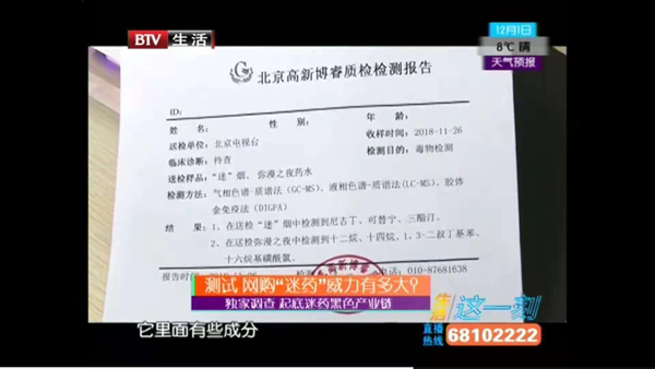近日,北京電視臺以題為《獨家調(diào)查:起底迷藥黑色產(chǎn)業(yè)鏈》曝光了一些買賣迷藥的不法行為。記者為采訪錄制該視頻報道,實地采訪了河北博睿毒檢中心同一集團下的北京高新博睿毒檢中心。并帶著從網(wǎng)上購買的兩瓶不同款迷藥請北京高新博睿檢測中心檢測,結(jié)果發(fā)現(xiàn),其中有假迷藥。這讓記者感到十分驚訝。